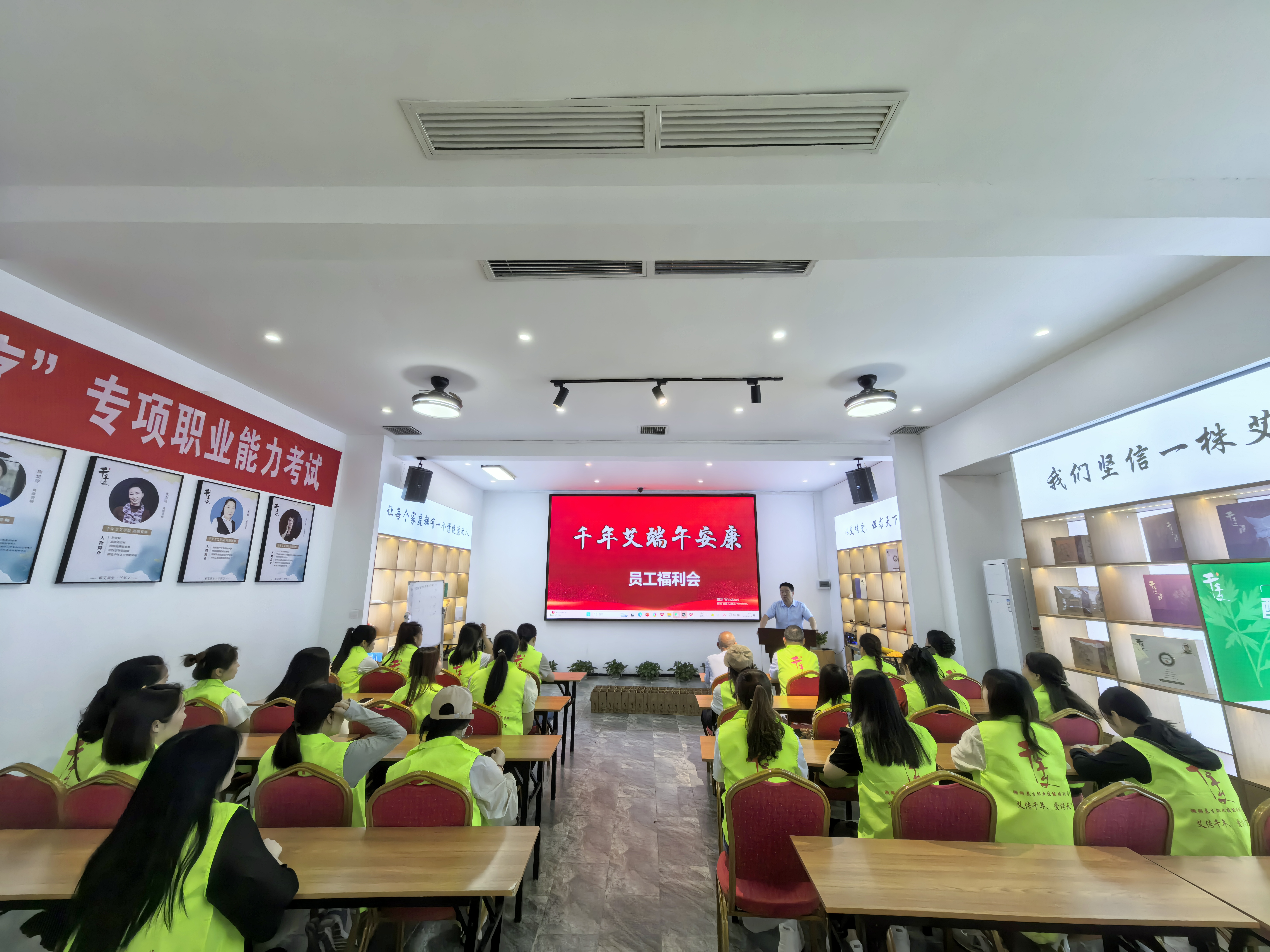 活动伊始,为感谢全体员工的辛勤付出,增强团队凝聚力,特别举办一场温馨的员工福利会,千年艾集团总经理王总为大家送上节日的祝福与福利,让每一位员工在忙碌的工作之余,感受到公司的关怀与温暖。